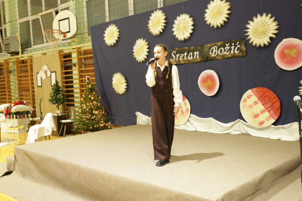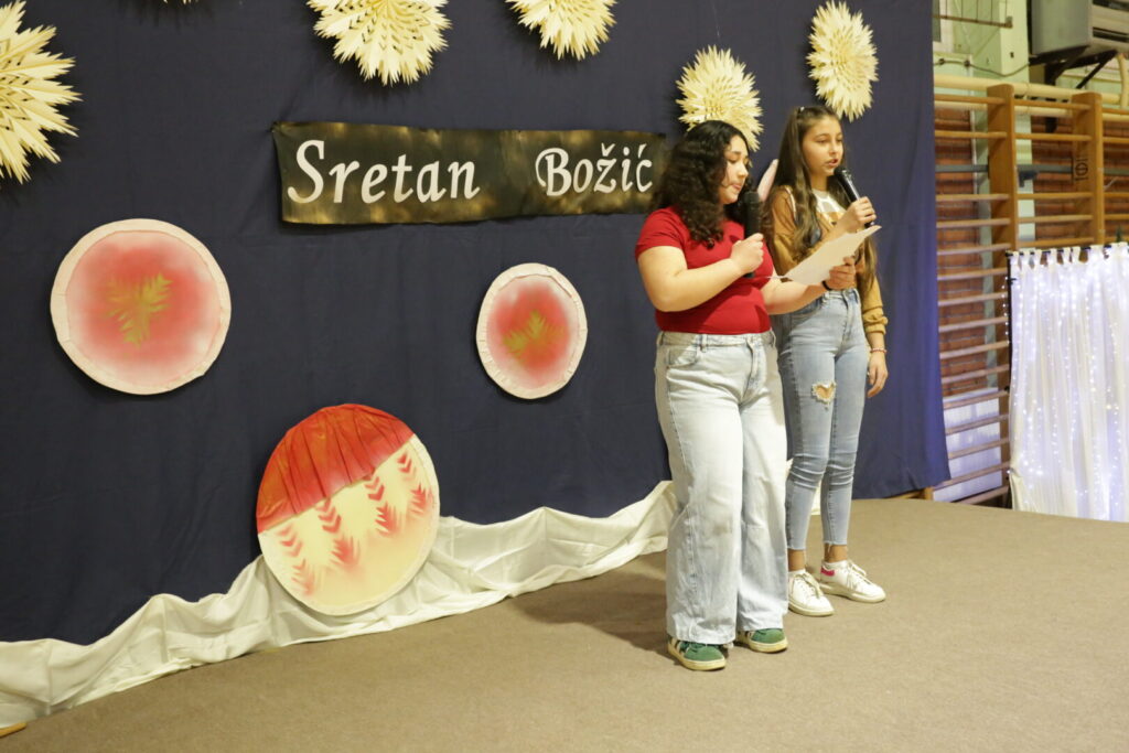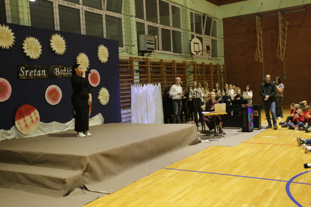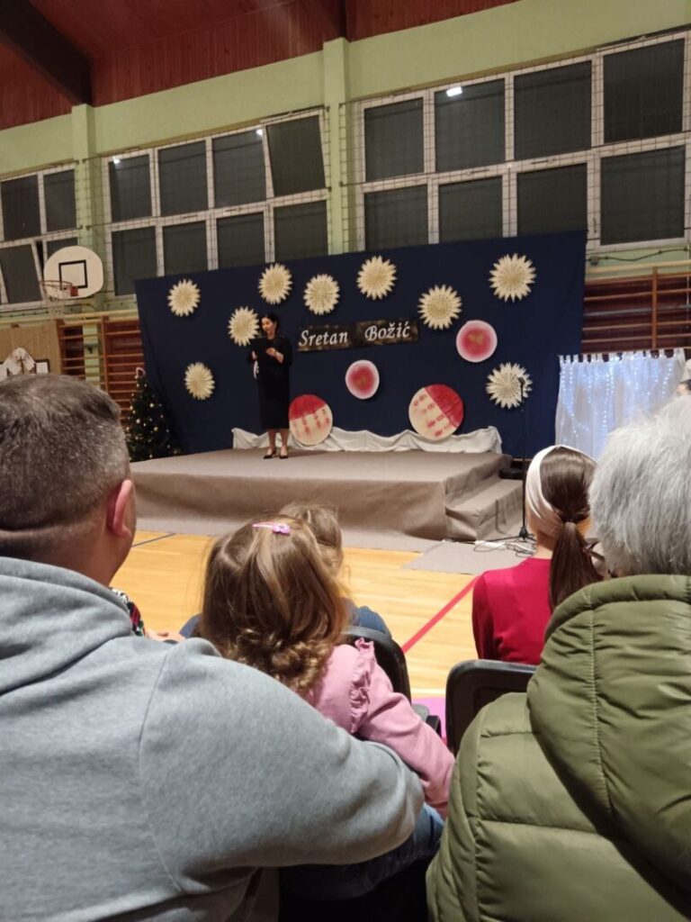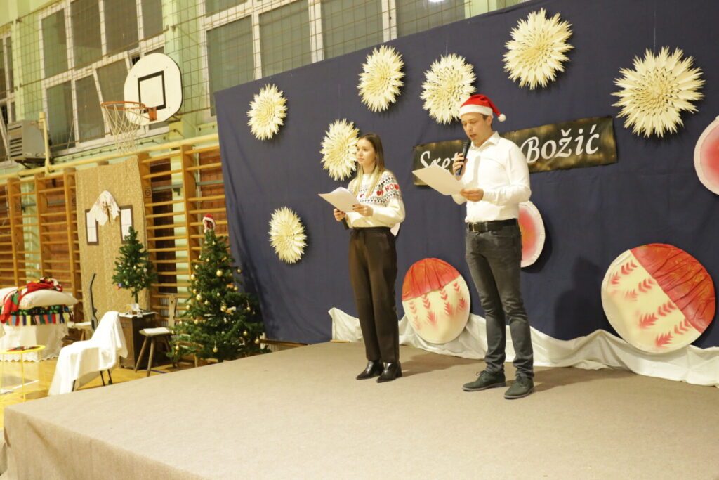 Bogati program priredbe ispunili su naši učenici koji su se predstavili plesnim točkama, glumom, recitacijama i pjesmom. Svojim trudom i kreativnošću uspješno su prenijeli duh Božića te razveselili sve nazočne. Nakon priredbe uslijedio je božićni sajam, na kojem su bili izloženi radovi koje su učenici izrađivali zajedno sa svojim razrednicima. Posjetitelji su mogli pronaći raznovrsne božićne ukrase, rukotvorine, domaće čajeve i mnoge druge prigodne proizvode, a sve u znaku zajedništva i blagdanskog duha. Za sve prisutne bila je pripremljena i zakuska, koju su velikodušno donirali naši suradnici, kojima se ovim putem iskreno zahvaljujemo.