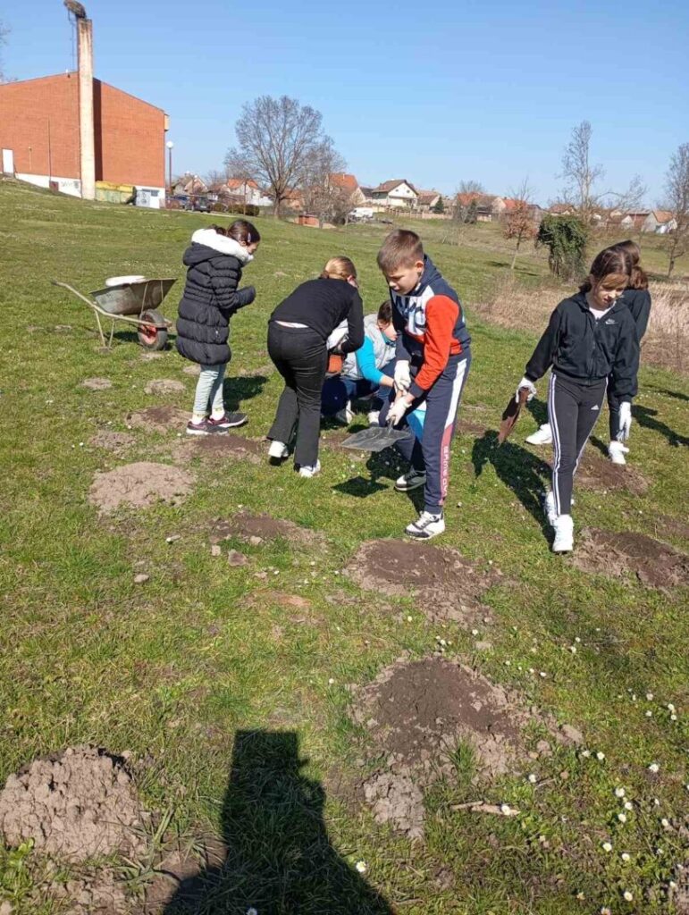 Naš domar izradio je drvene gredice koje će služiti za uzgoj povrća i drugih biljaka. Učenici su zatim nekoliko dana sudjelovali u pripremi gredica tako što su prikupljali zemlju iz krtičnjaka u školskom dvorištu te su njome punili gredice. Tako su na zanimljiv i praktičan način sudjelovali u stvaranju prostora u kojem će uskoro rasti biljke.