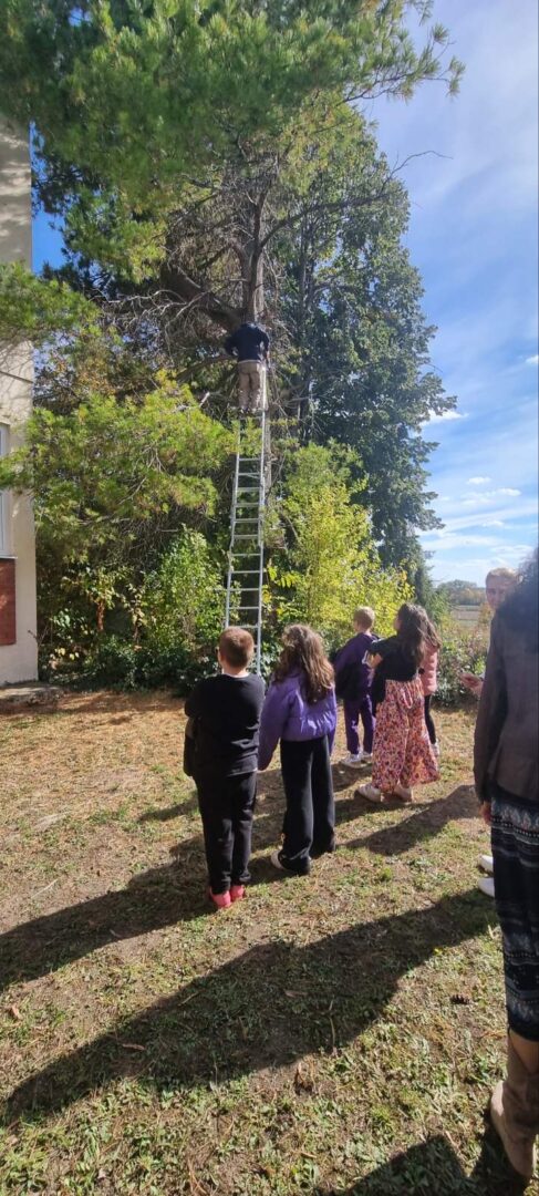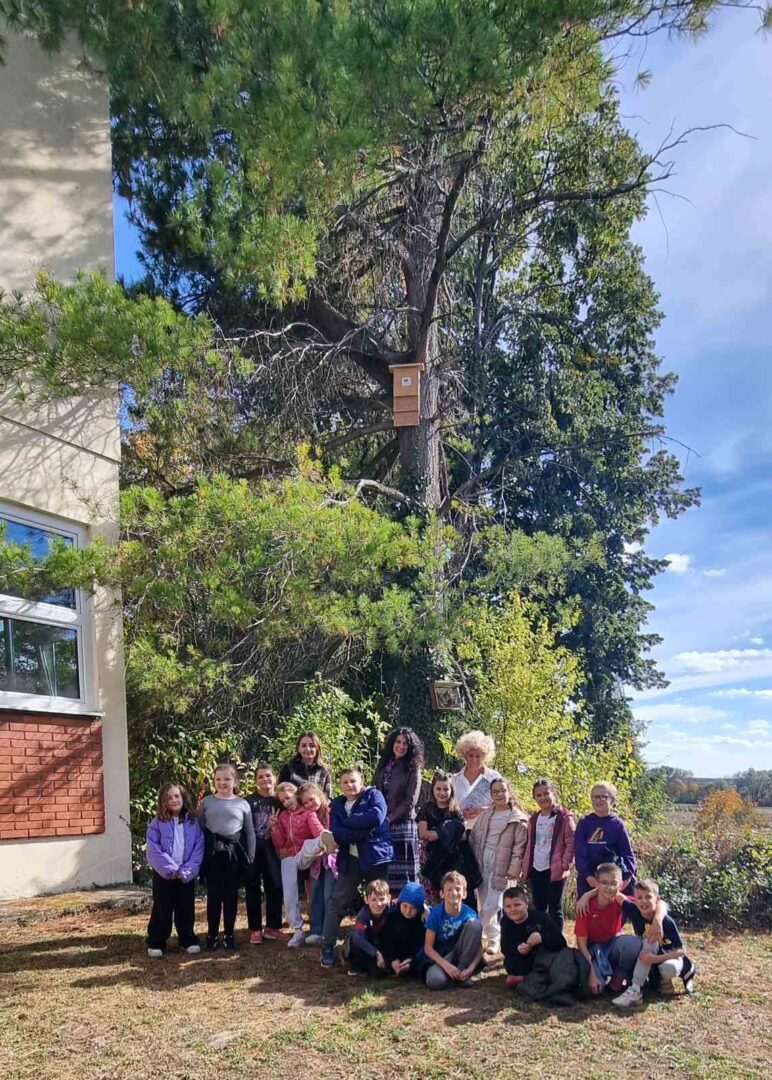 Nakon interaktivne radionice, uz pomoć školskog domara, edukatorice su zajedno s učenicima postavile kućicu za šišmiše.