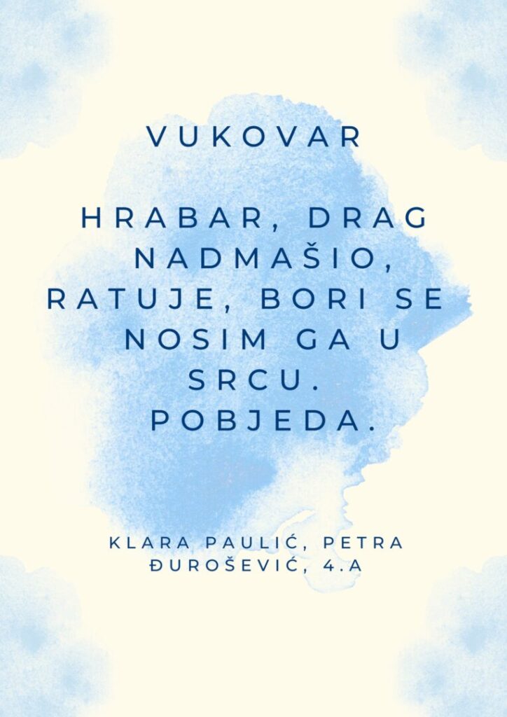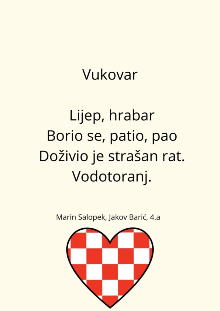 Kroz činkvine i akrostihe, nastale u radu u paru, učenici su izrazili svoje misli, poštovanje i zahvalnost svima koji su branili Vukovar.