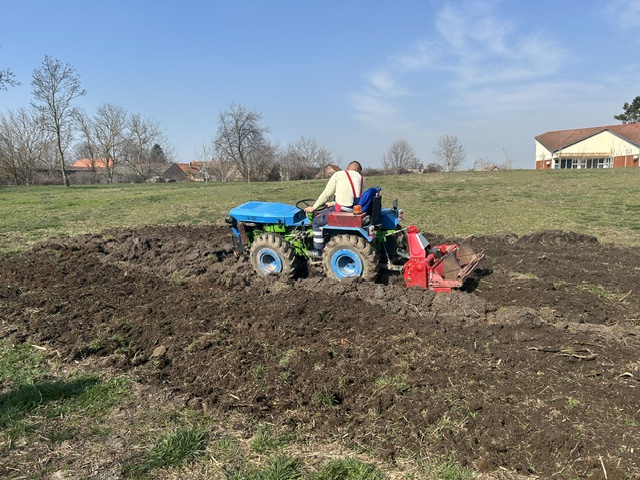 Veliku pomoć pružio nam je Tomislav Štadlmajer, koji je potanjurao i pofrezao zemlju kako bi bila spremna za daljnje radove. Sve je to učinio besplatno, na čemu smo mu iznimno zahvalni.