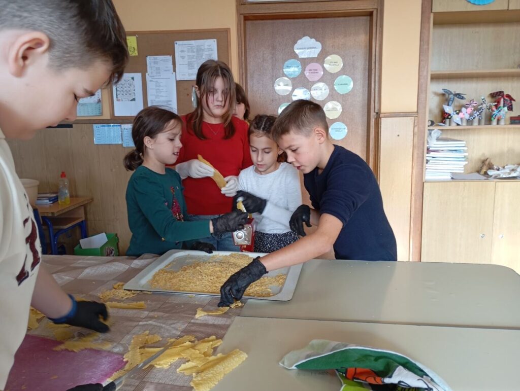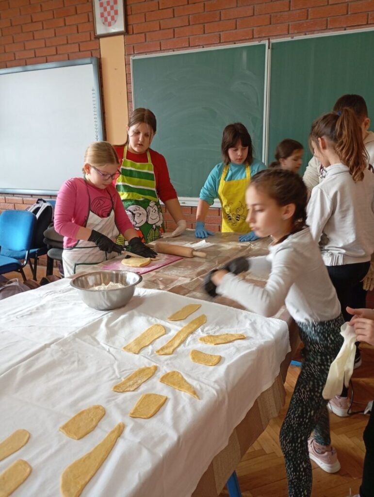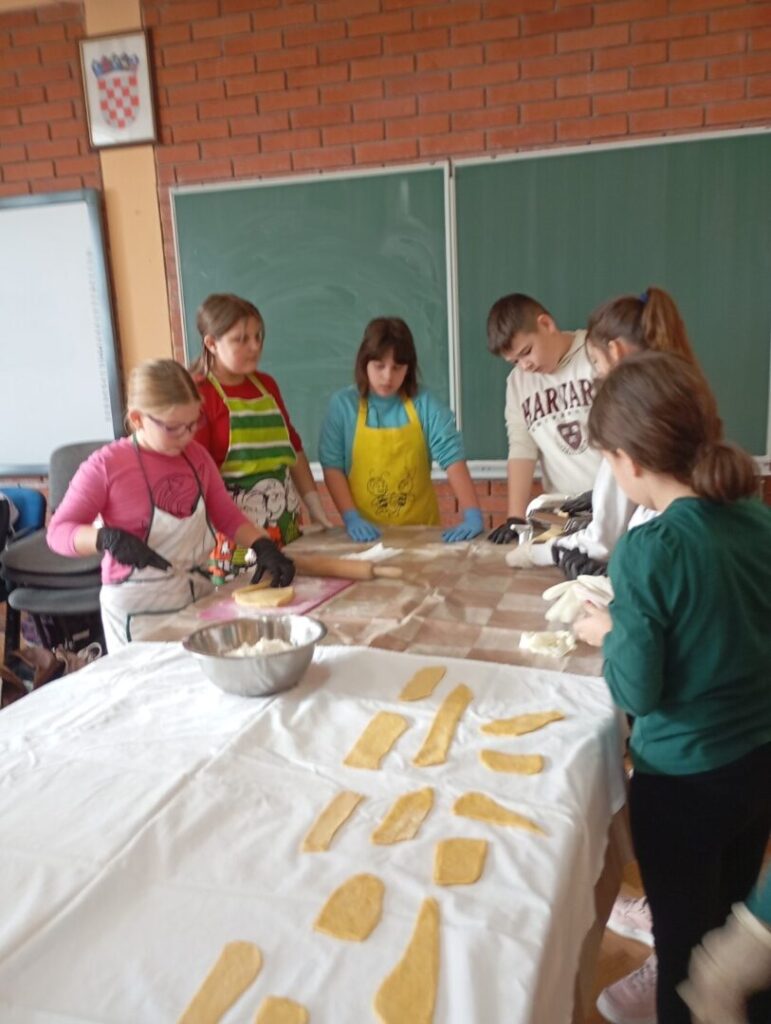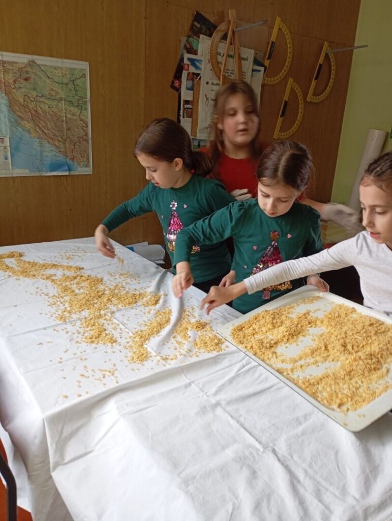 “Budući da ove školske godine u 4. razredu pohađamo INA Domaćinstvo, odlučili smo se okušati u domaćoj radinosti. Sami smo izradili adventski kalendar. Neki od nas su po prvi put uzeli iglu u ruke i s ponosom izradili borove od vune kojima smo ukrasili naš pano. Poseban doživljaj bilo je pravljenje krpica za juhu od domaćih jaja, pri čemu smo učili, surađivali i uživali u zajedničkom radu. Uz puno smijeha i dobre volje, prosinačke radionice ostavile su nam lijepe uspomene.”