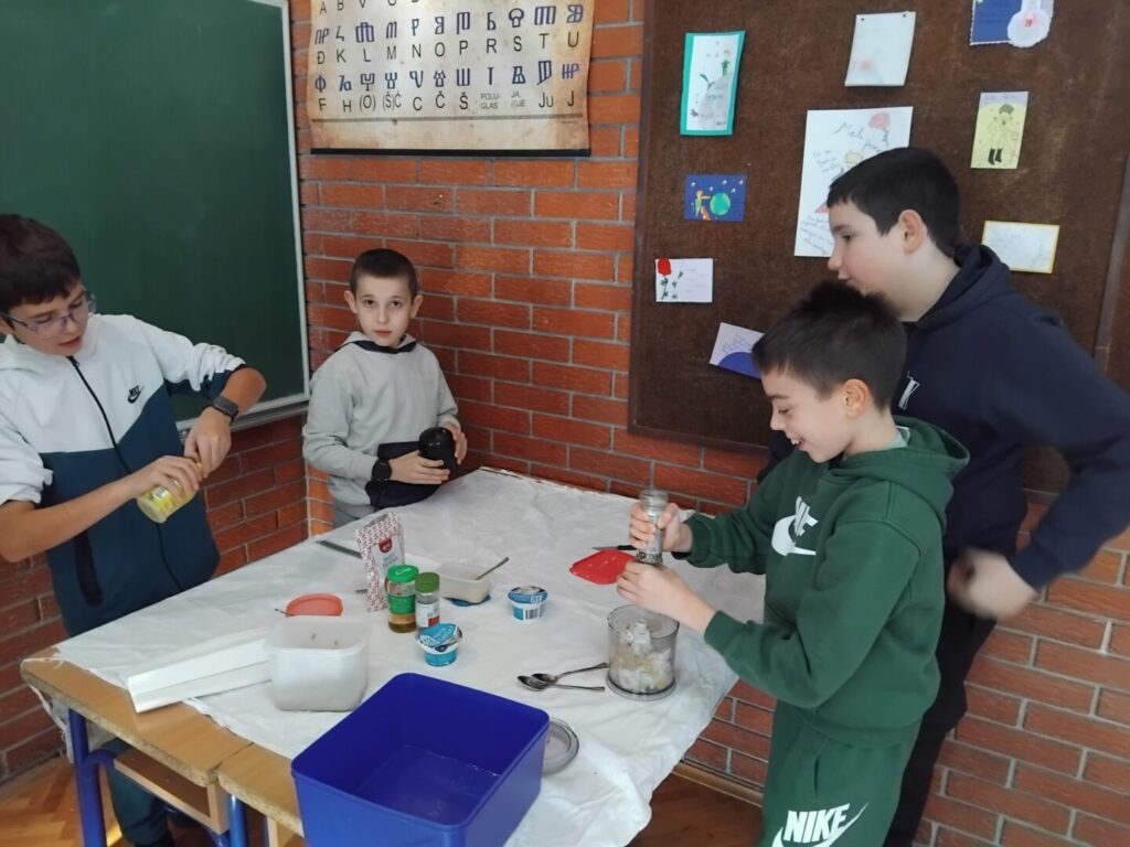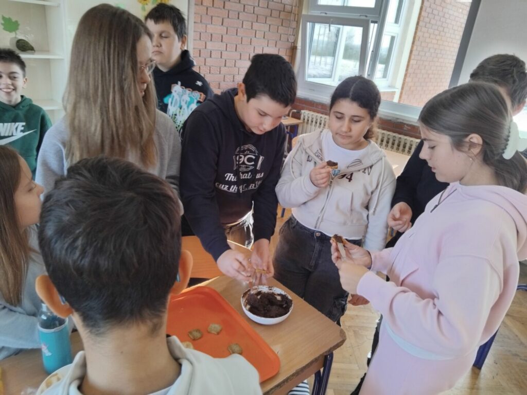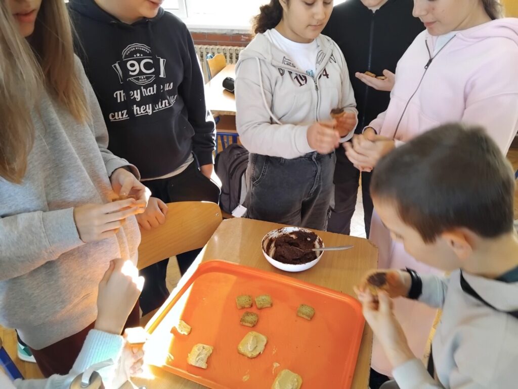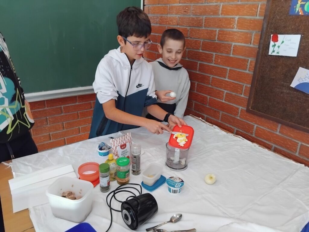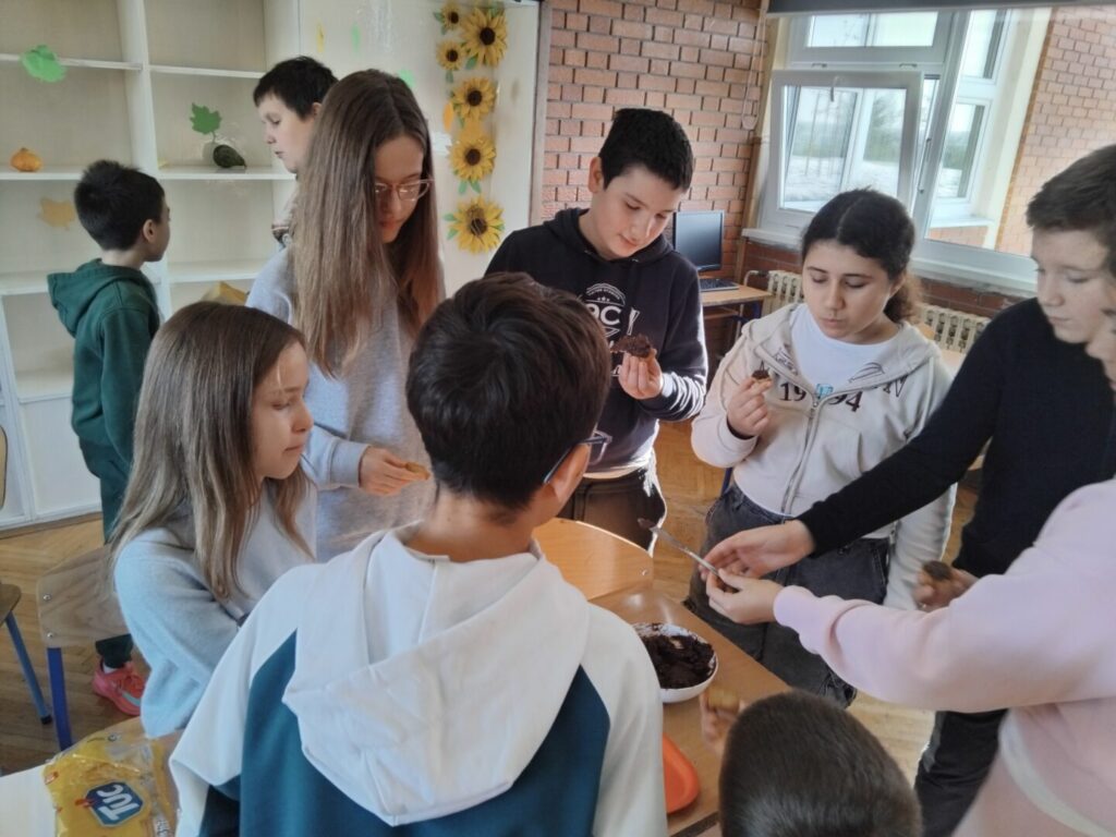 Na satu razrednika učenici 6.b razreda su se bavili temom održivosti i zdrave prehrane. Razgovarali su o tome kako male promjene u svakodnevnim navikama mogu doprinijeti zdravijem načinu života i odgovornijem odnosu prema okolišu. Kao praktični dio aktivnosti, učenici su pripremili domaću “nutellu” (datulje, lješnjak, kakao) i paštetu od tune, ukusne, zdrave i održive alternative kupovnim namazima. Uz puno smijeha, zajedničkog rada i druženja, naučili su kako se jednostavnim sastojcima može napraviti ukusan obrok bez nepotrebnih aditiva i ambalažnog otpada. Bravo našim vrijednim učenicima i nastavnici na kreativnoj i poučnoj radionici!
